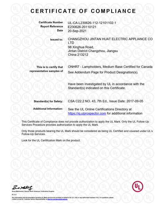 UL證書 螺口燈座E12 E464630