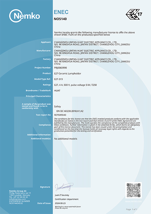 CQC證書螺口燈座E40 304 307 313中文版